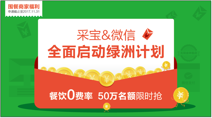溫馨提示:目前尚未開通微信支付商家版的商戶,請聯系采寶工作人員先開通微信支付,滿足申請條件之后即可享受0費率